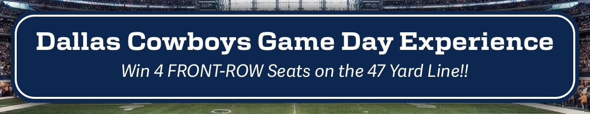 Special raffle: Dallas Cowboys Game Day Experience: 4 Front-Row tickets on the 47 yard line worth $13,200. Raffle tickets are only $200 ea. Get yours now.